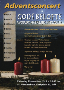 Opgevoerd wordt de cantate: “Gods belofte wordt heerlijk vervuld” van Leander van der Steen.